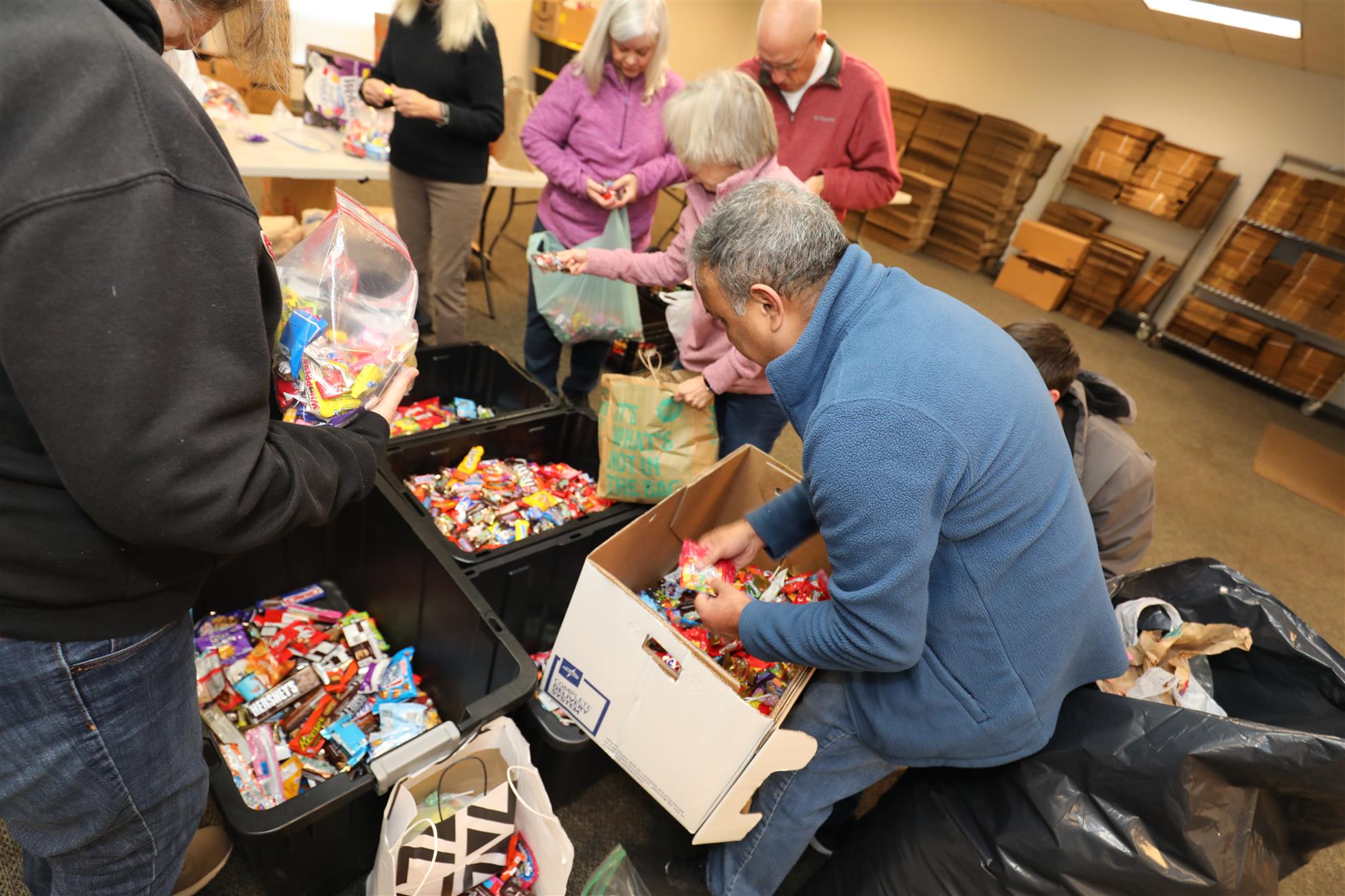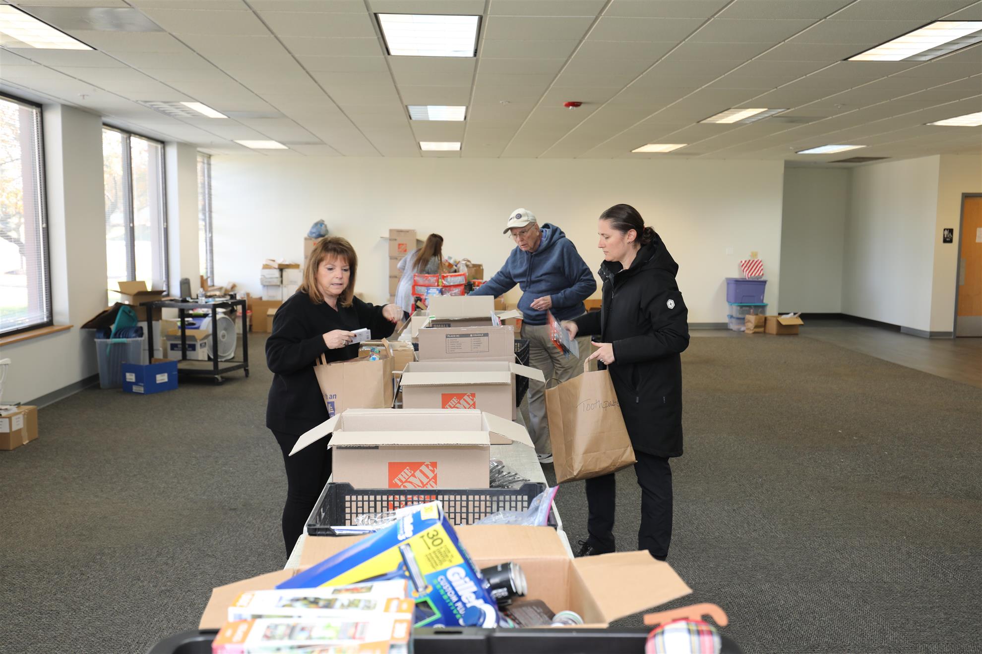 Then on Thursday of this week 19 of us dug in and sorted the donations collected and fulfilled other tasks to support special needs people of our community and active duty military overseas. The team had two members of the Rotary Club of West Chicago and one of our newest members, Debera Thomas, brought three friends to help out.