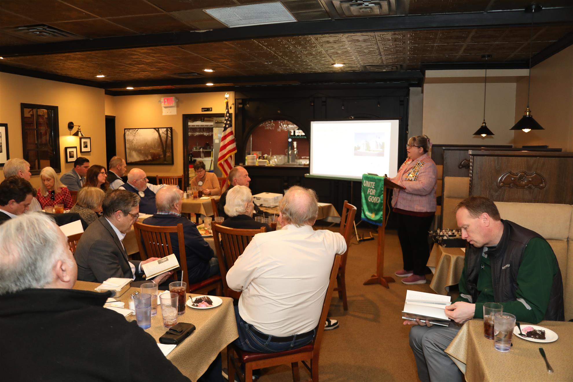 We welcomed Jessica Piemonte of the Anon Harmon, Glen Ellyn Chapter of the Daughters of the American Revolution (DAR). She wears many hats but in regard to her visit with our club, she is the local chapter historian and as such is well qualified to bring our club up to date and give us a since of the work done by DAR.