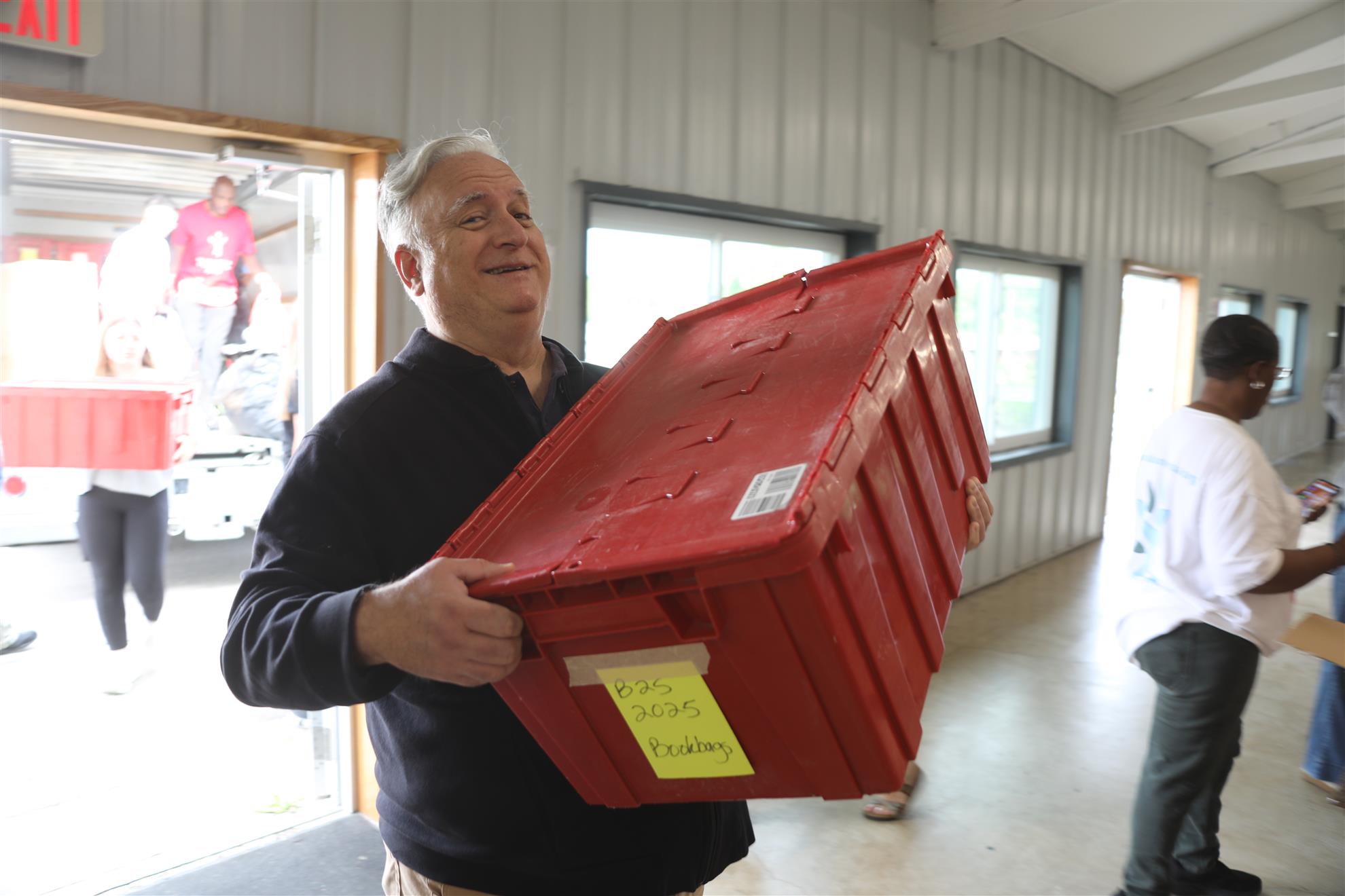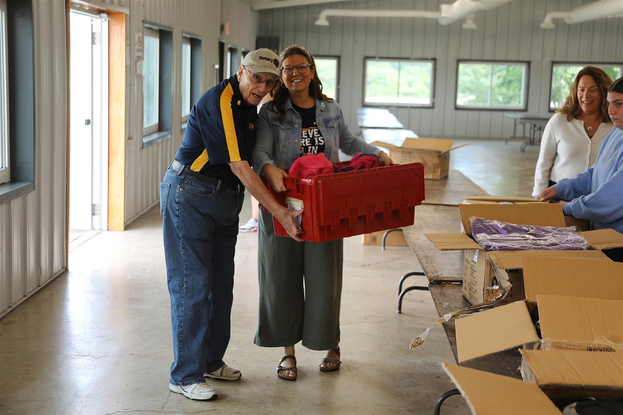 The members of the Rotary Club of Glen Ellyn sorted school materials and packed hundreds of school backpacks. it was a perfect day to serve the students of lower income homes and to cooperate with a local organization.